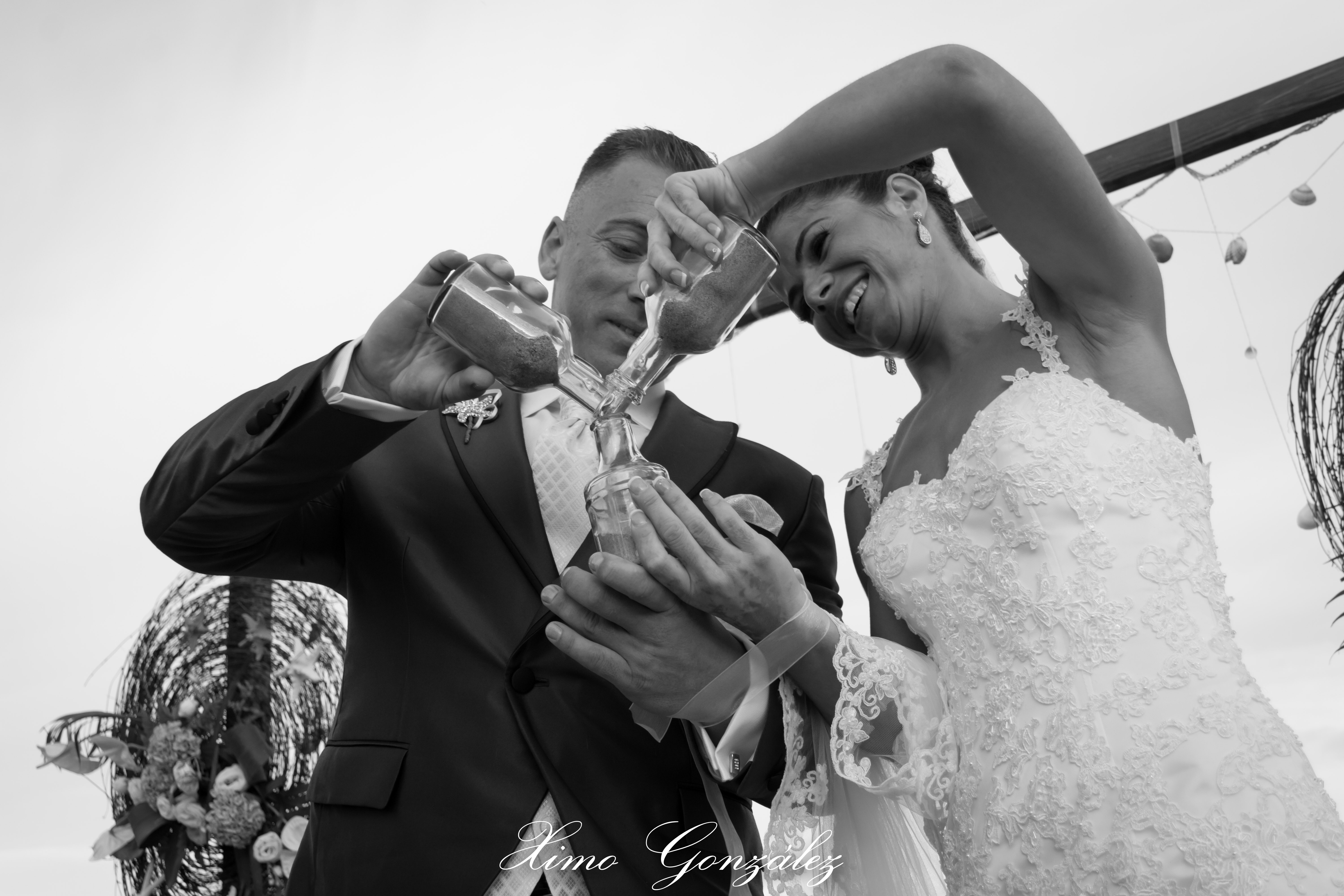Una vez todos vestidos, nos plantamos en la playa, a escasos metros de la orilla, para contemplar la unión en matrimonio de esta pareja tan especial.
